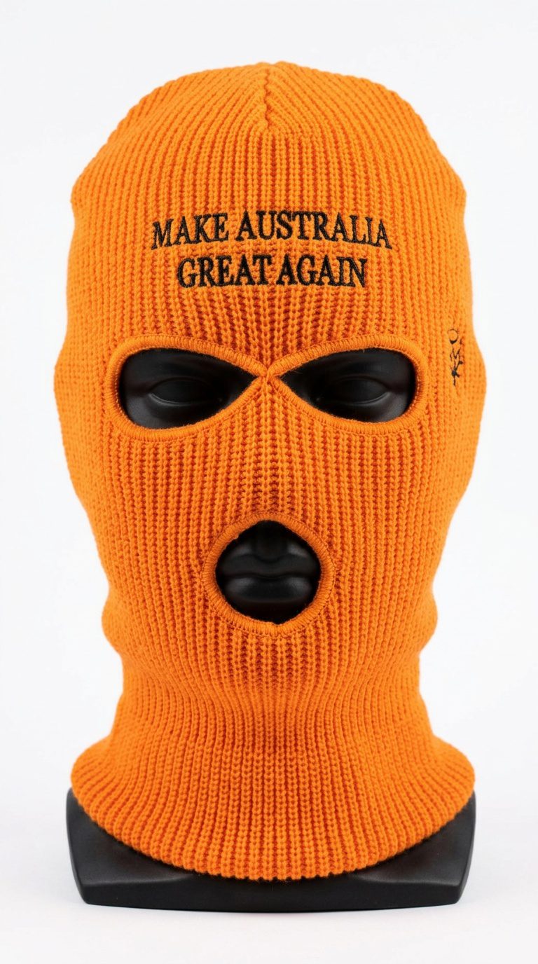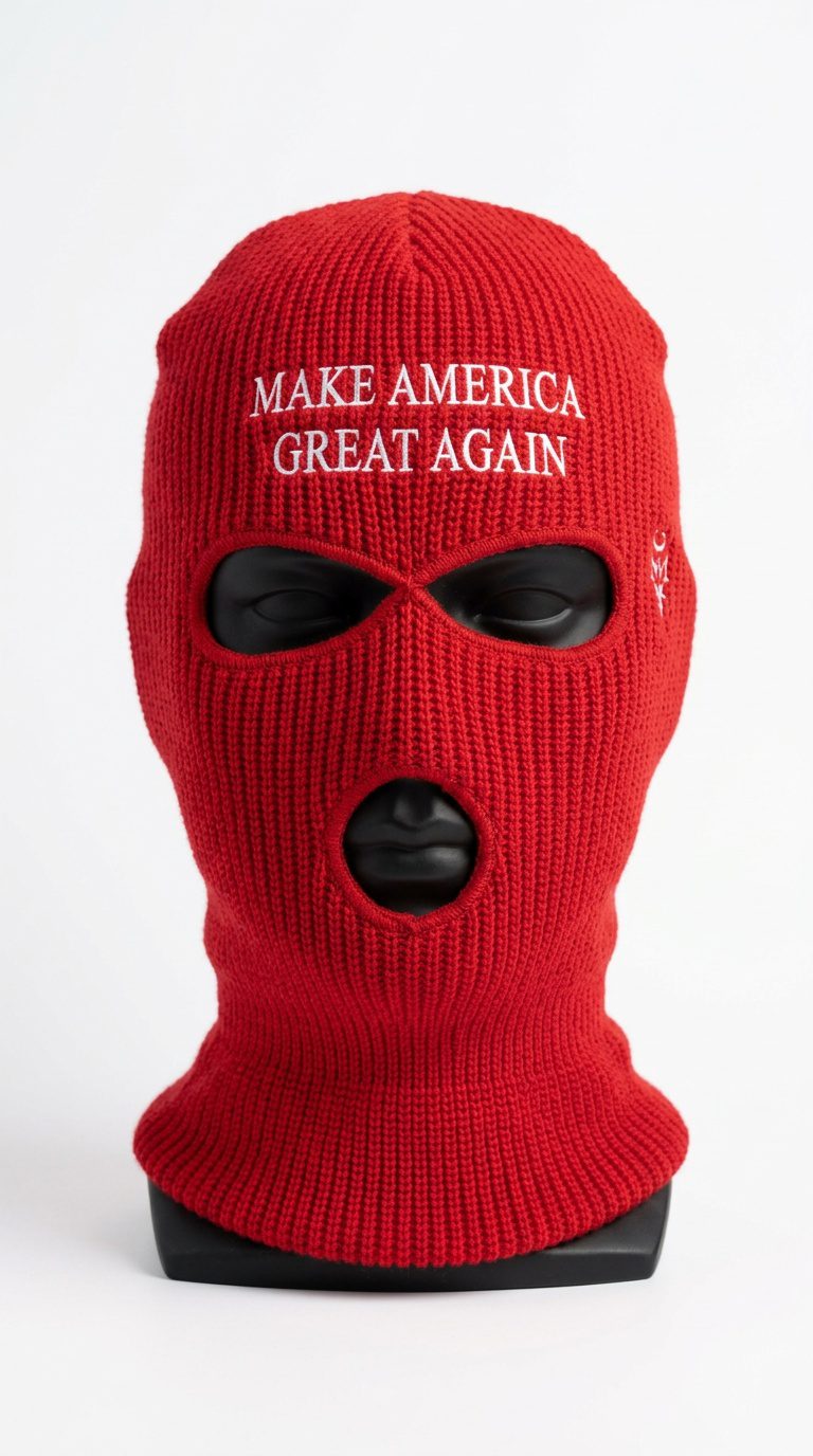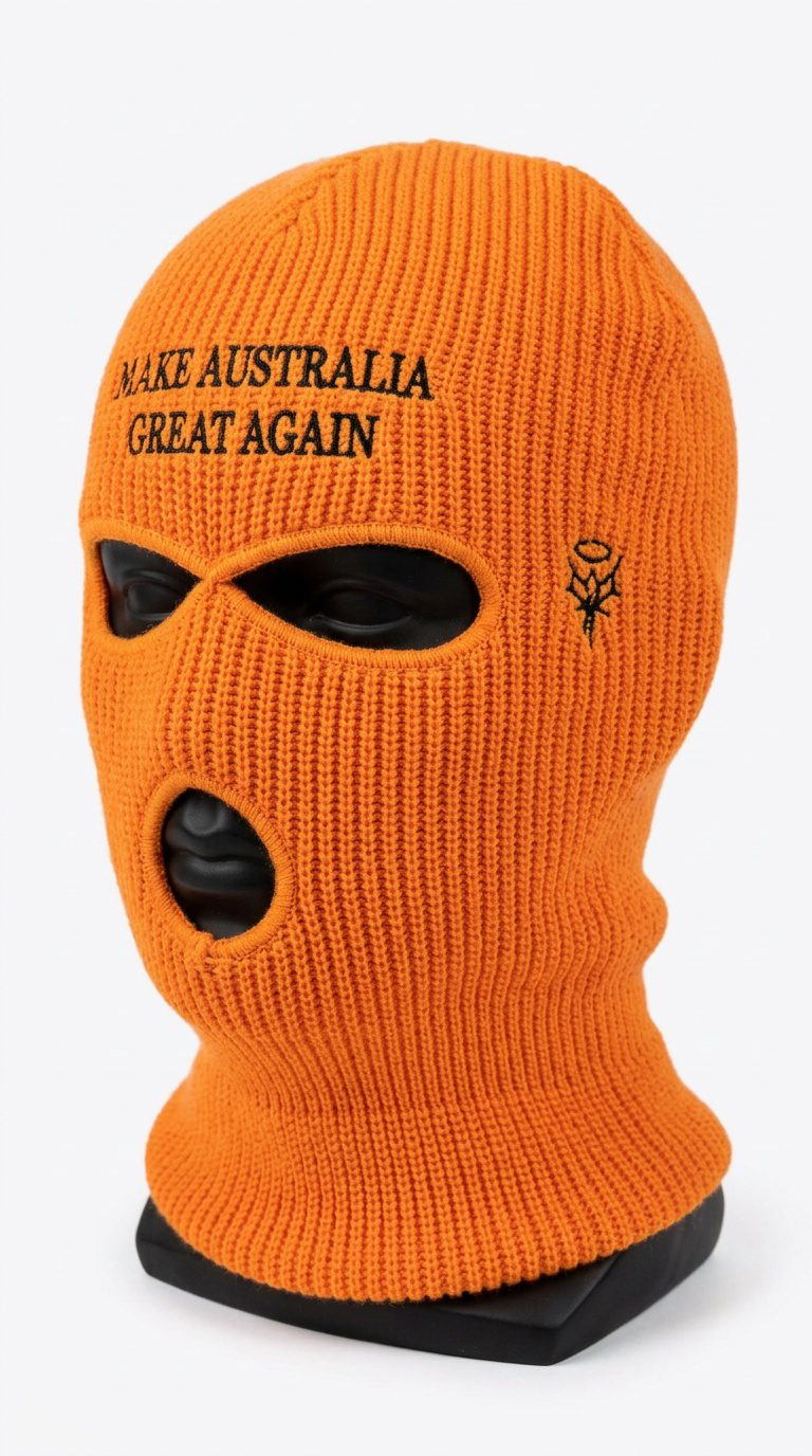 Heavyweight knit balaclava with a structured fit and premium embroidery in two colourways built from political identity: